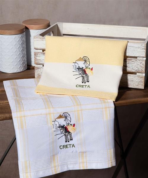 Σετ 2 τεμαχίων ποτηρόπανα (50cm x 70cm) ανεμόμυλος κίτρινο CRETA