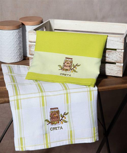 Σετ 2 τεμαχίων ποτηρόπανα (50cm x 70cm) βάζο πράσινο CRETA