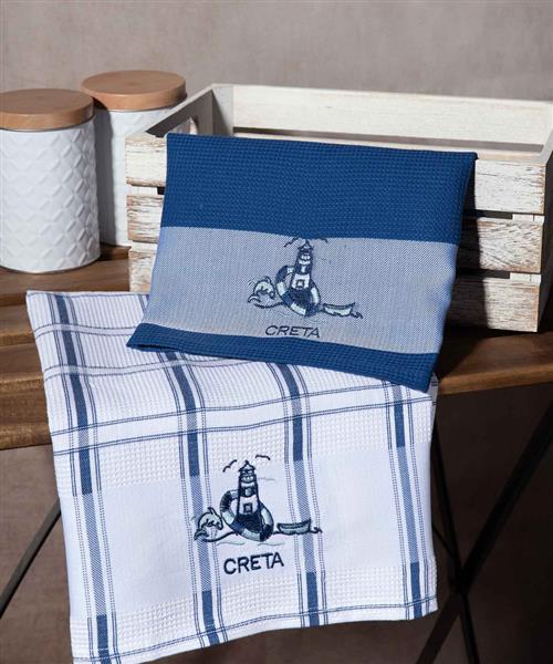 Σετ 2 τεμαχίων ποτηρόπανα (50cm x 70cm) μπλέ φάρος CRETA
