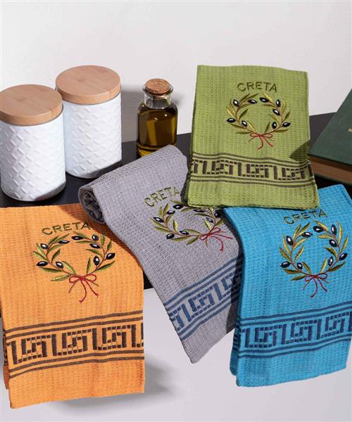 Σετ 12 τεμαχίων ποτηρόπανα (45cm x 65cm) στεφάνι ελιάς χρωματιστό CRETA