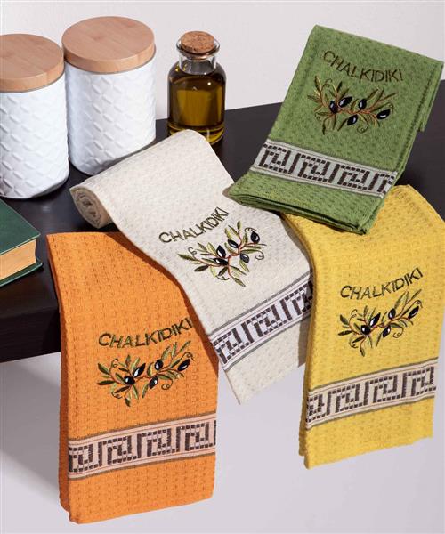 Σετ 12 τεμαχίων ποτηρόπανα (45cm x 65cm) κλαδί ελιάς χρωματιστό CHALKIDIKI