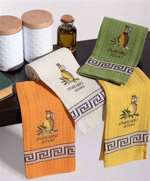 Σετ 12 τεμαχίων ποτηρόπανα (45cm x 65cm) μπουκάλι λάδι CHALKIDIKI