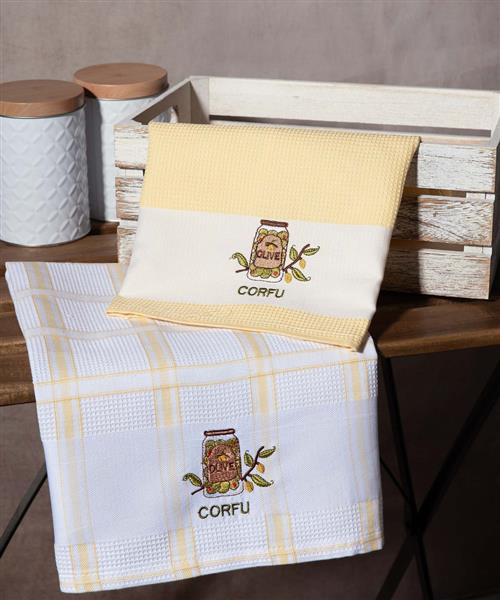 Σετ 2 τεμαχίων ποτηρόπανα (50cm x 70cm) βάζο κίτρινο CORFU