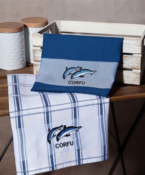 Σετ 2 τεμαχίων ποτηρόπανα (50cm x 70cm) μπλέ δελφίνι CORFU