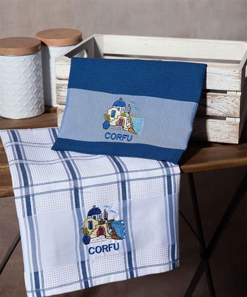 Σετ 2 τεμαχίων ποτηρόπανα (50cm x 70cm) μπλέ εκκλησία CORFU