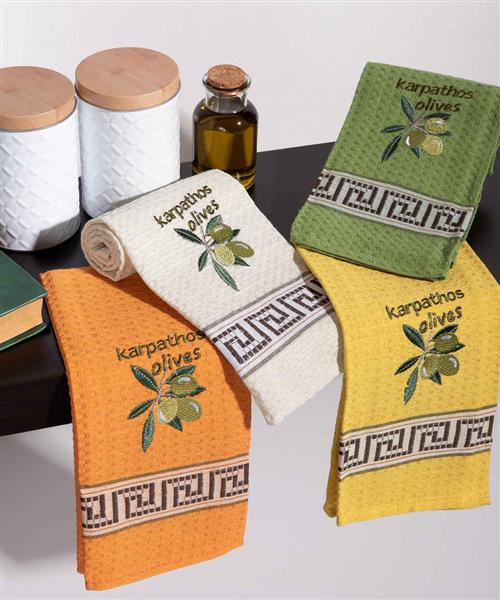Σετ 12 τεμαχίων ποτηρόπανα (45cm x 65cm) καρπός ελιάς KARPATHOS