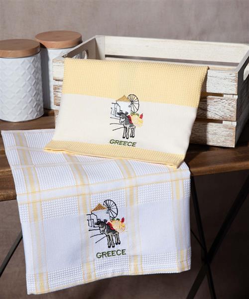 Σετ 2 τεμαχίων ποτηρόπανα (50cm x 70cm) ανεμόμυλος κίτρινο GREECE