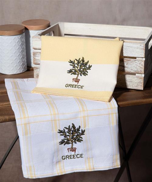 Σετ 2 τεμαχίων ποτηρόπανα (50cm x 70cm) γλάστρα κίτρινο GREECE