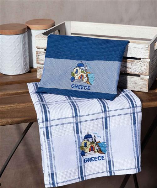 Σετ 2 τεμαχίων ποτηρόπανα (50cm x 70cm) μπλέ εκκλησία GREECE