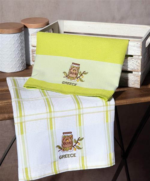 Σετ 2 τεμαχίων ποτηρόπανα (50cm x 70cm) βάζο πράσινο GREECE