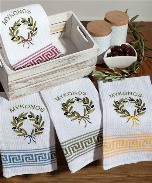 Σετ 12 τεμαχίων ποτηρόπανα (50cm x 70cm) στεφάνι MYKONOS