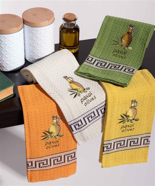 Σετ 12 τεμαχίων ποτηρόπανα (45cm x 65cm) μπουκάλι λάδι PAXOI