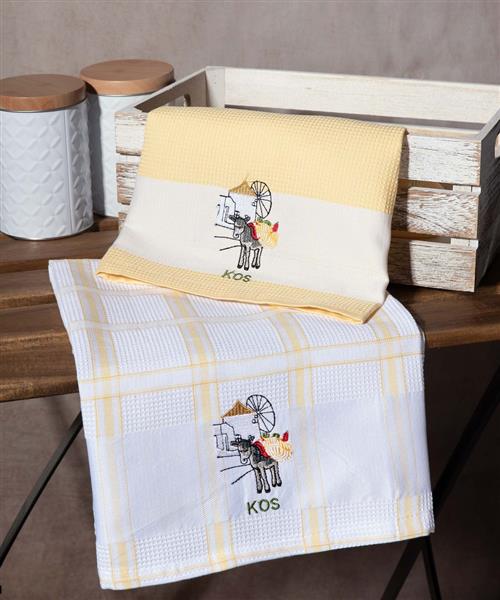 Σετ 2 τεμαχίων ποτηρόπανα (50cm x 70cm) ανεμόμυλος κίτρινο KOS
