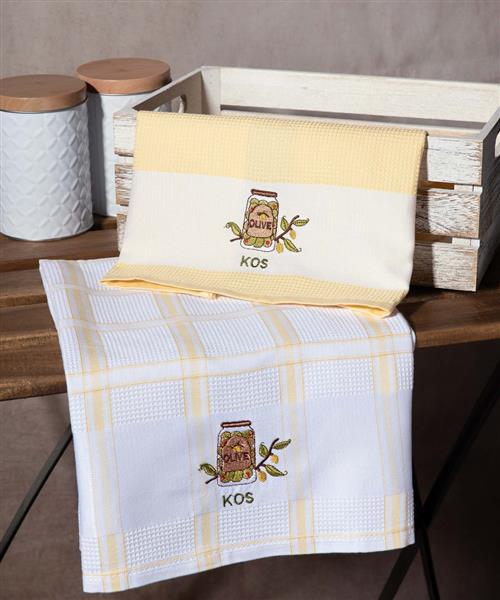 Σετ 2 τεμαχίων βαμβακερά ποτηρόπανα με κέντημα