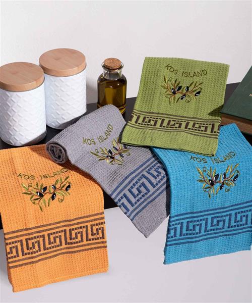Σετ 12 τεμαχίων ποτηρόπανα (45cm x 65cm) κλαδί ελιάς χρωματιστό KOS