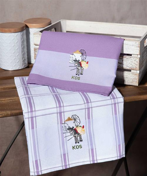 Σετ 2 τεμαχίων ποτηρόπανα (50cm x 70cm) ανεμόμυλος λιλά KOS