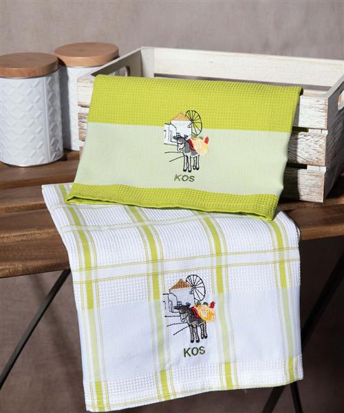 Σετ 2 τεμαχίων ποτηρόπανα (50cm x 70cm) ανεμόμυλος πράσινο KOS