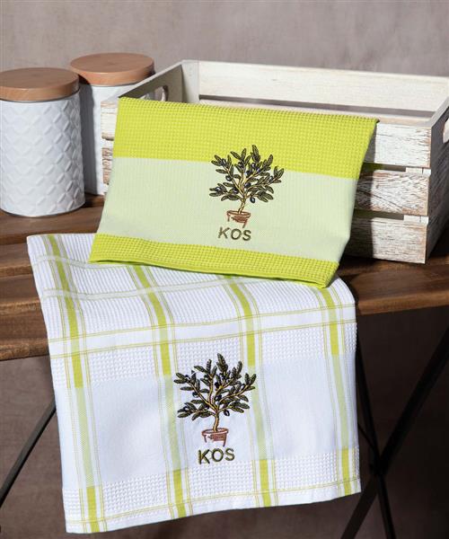 Σετ 2 τεμαχίων ποτηρόπανα (50cm x 70cm) γλάστρα πράσινο KOS
