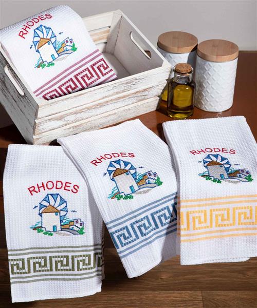 Σετ 12 τεμαχίων ποτηρόπανα (50cm x 70cm) ανεμόμυλος RHODES