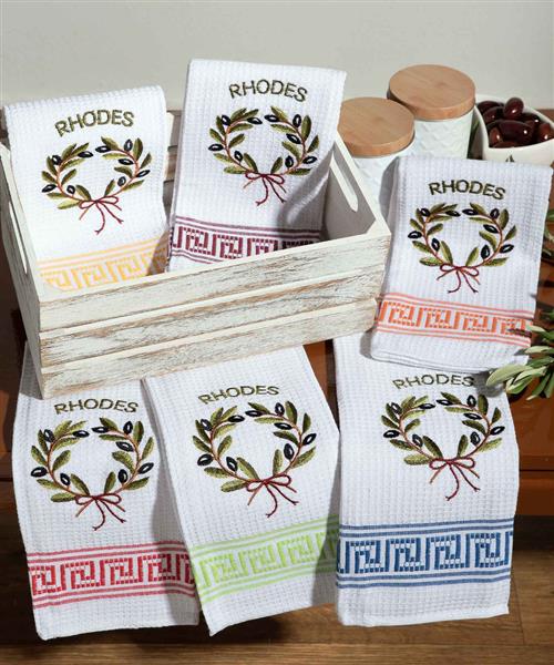 Σετ 12 τεμαχίων ποτηρόπανα (45cm x 65cm) στεφάνι RHODES