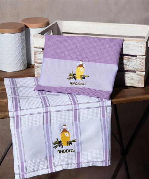 Σετ 2 τεμαχίων ποτηρόπανα (50cm x 70cm) μπουκάλι λιλά RHODES