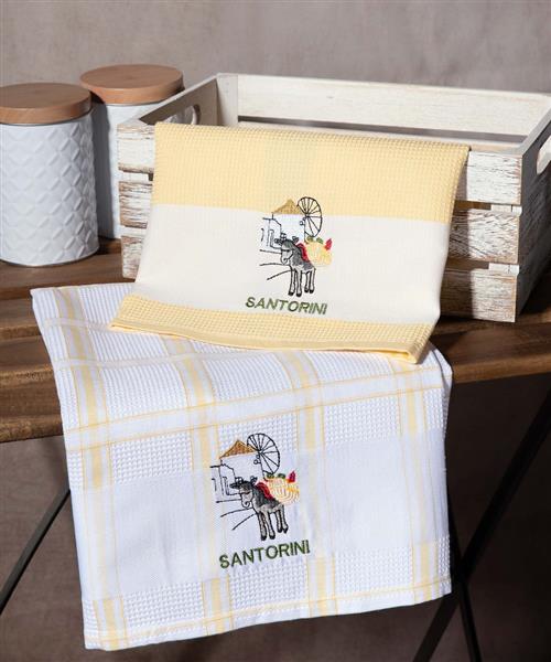 Σετ 2 τεμαχίων ποτηρόπανα (50cm x 70cm) ανεμόμυλος κίτρινο SANTORINI