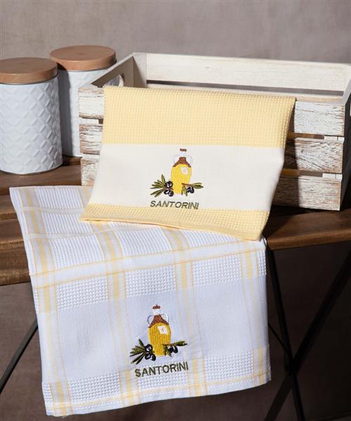 Σετ 2 τεμαχίων ποτηρόπανα (50cm x 70cm) μπουκάλι κίτρινο SANTORINI