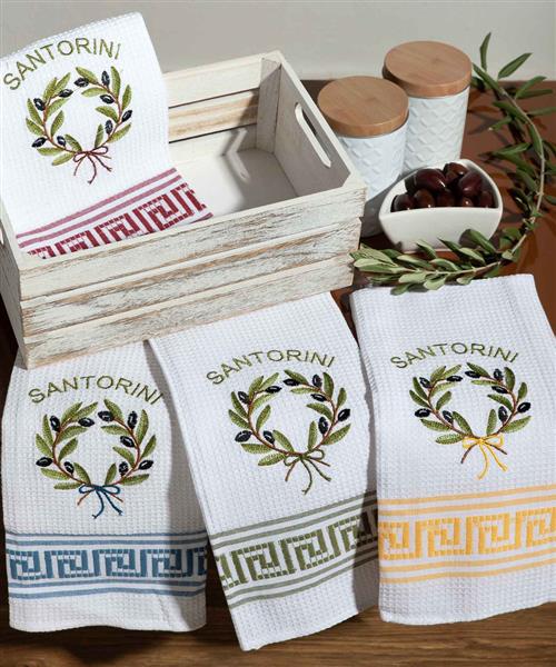 Σετ 12 τεμαχίων ποτηρόπανα (50cm x 70cm) στεφάνι SANTORINI