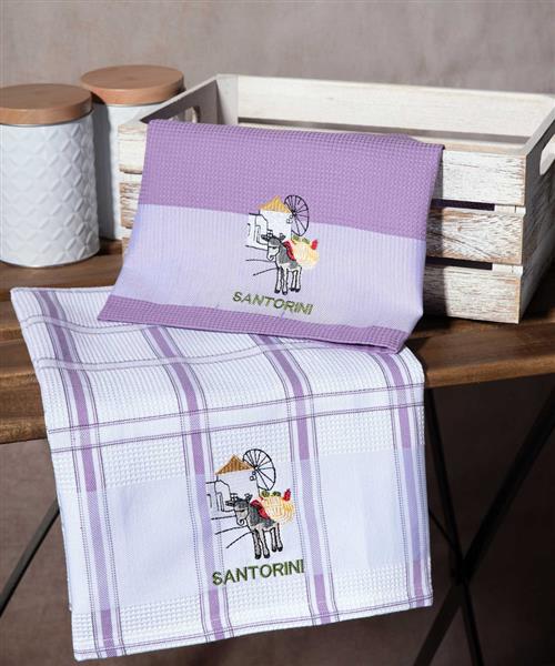 Σετ 2 τεμαχίων ποτηρόπανα (50cm x 70cm) ανεμόμυλος λιλά SANTORINI