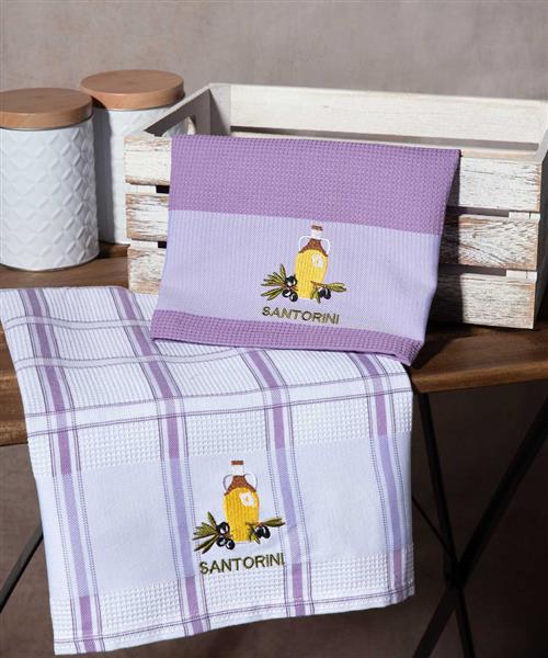 Σετ 2 τεμαχίων ποτηρόπανα (50cm x 70cm) μπουκάλι λιλά SANTORINI
