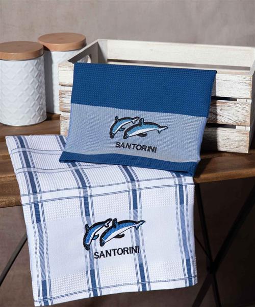 Σετ 2 τεμαχίων ποτηρόπανα (50cm x 70cm) μπλέ δελφίνι SANTORINI
