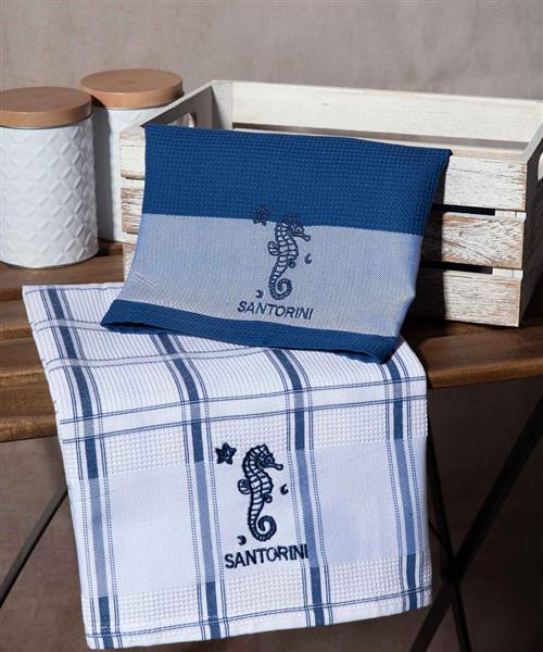 Σετ 2 τεμαχίων ποτηρόπανα (50cm x 70cm) μπλέ ιππόκαμπος SANTORINI