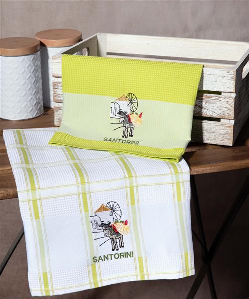 Σετ 2 τεμαχίων ποτηρόπανα (50cm x 70cm) ανεμόμυλος πράσινο SANTORINI