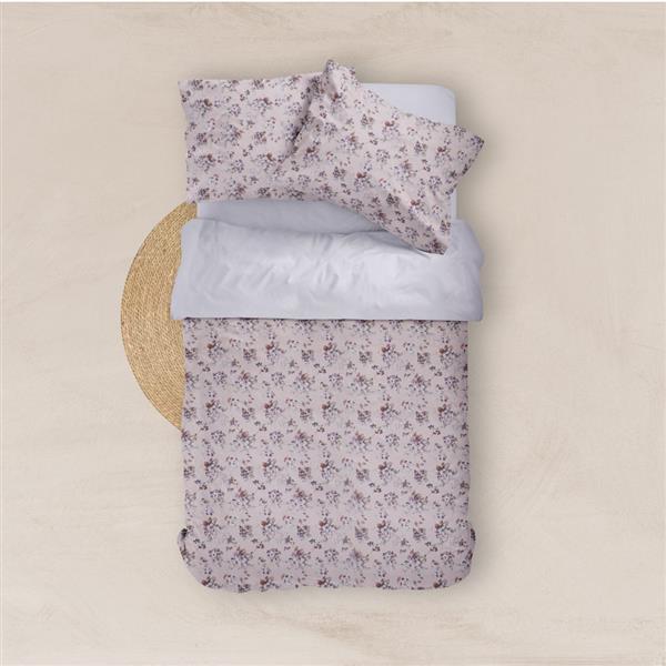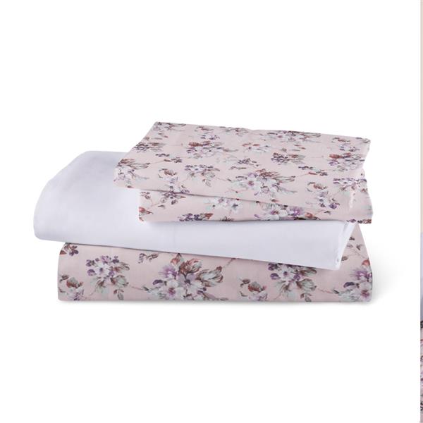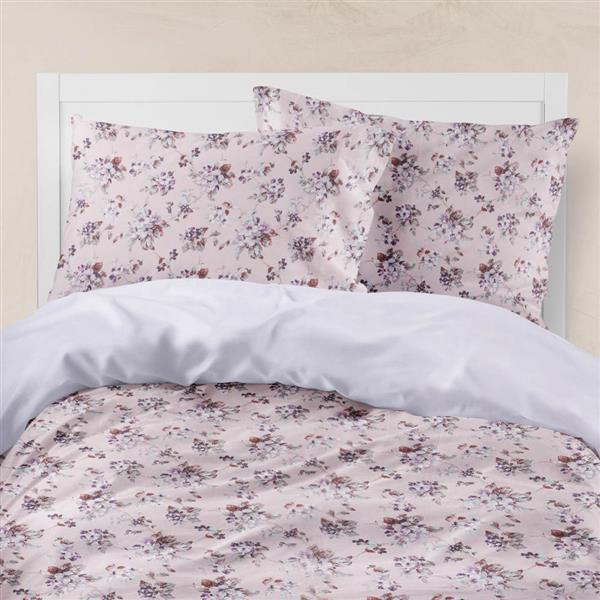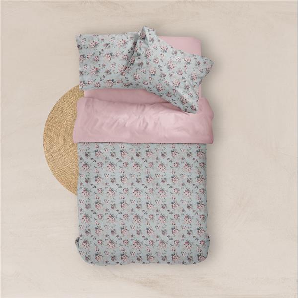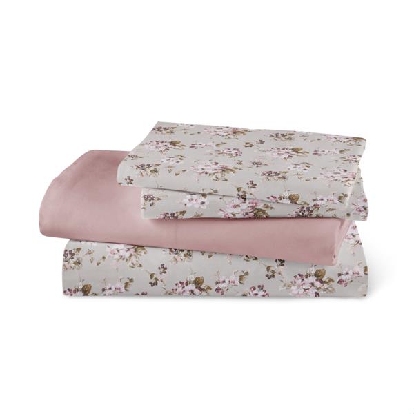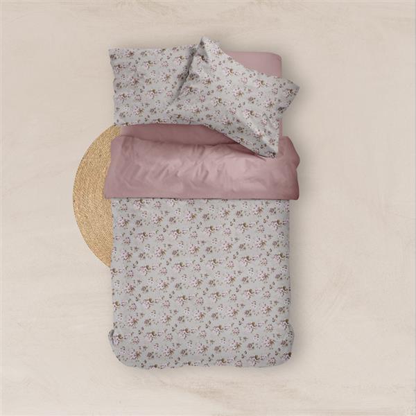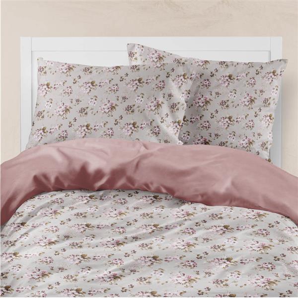 Σετ σεντόνια υπέρδιπλα με μαξιλαροθήκες από ύφασμα μερσεριζέ, 160 κλωστών, 100% βαμβακερό, συνδυασμός εμπριμέ φλοράλ μοτίβου και μονοχρωμίας, σε χρώμα βεραμάν.