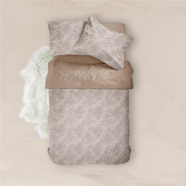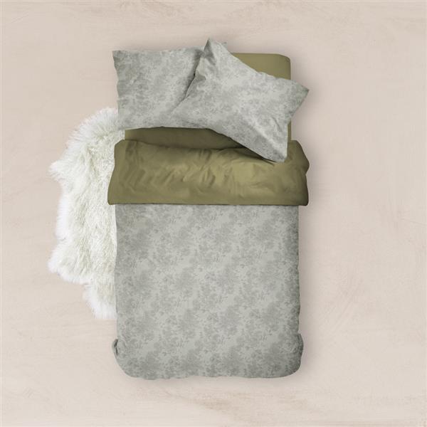 Σετ σεντόνια υπέρδιπλα με μαξιλαροθήκες από ύφασμα μερσεριζέ, 160 κλωστών, 100% βαμβακερό, συνδυασμός φλοράλ μοτίβου και μονοχρωμίας, σε χρώμα βεραμάν.