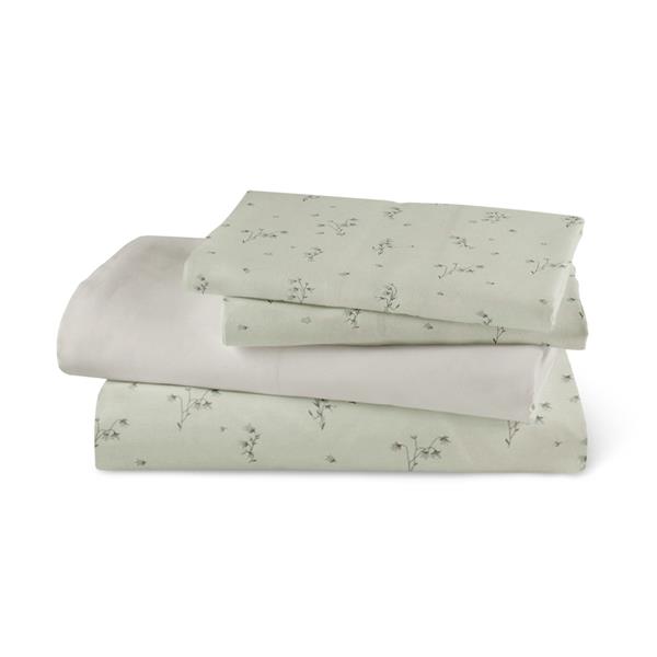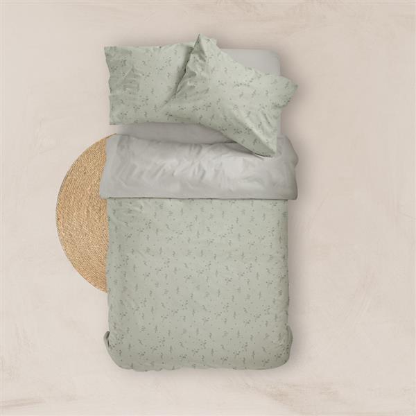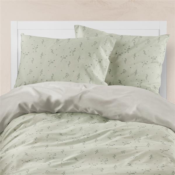 Σετ σεντόνια υπέρδιπλα με μαξιλαροθήκες από ύφασμα μερσεριζέ, 160 κλωστών, 100% βαμβακερό, συνδυασμός εμπριμέ φλοράλ μοτίβου και μονοχρωμίας, σε χρώμα λαδί.