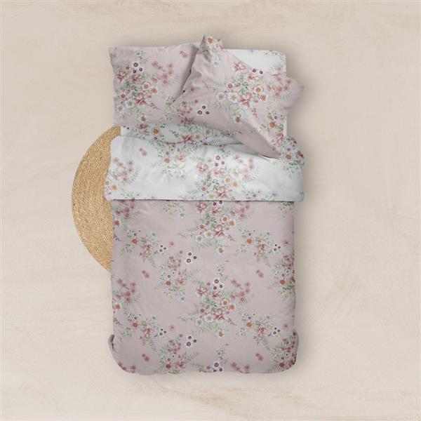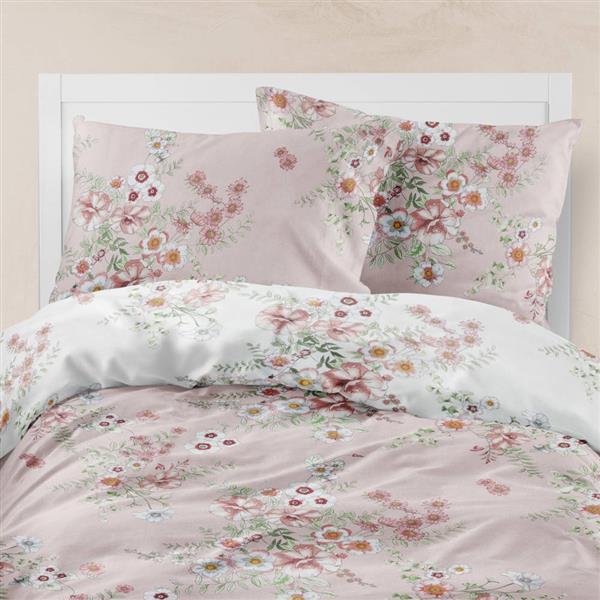 Σετ σεντόνια υπέρδιπλα με μαξιλαροθήκες από ύφασμα μερσεριζέ, 160 κλωστών, 100% βαμβακερό, συνδυασμός εμπριμέ φλοράλ μοτίβου, σε χρώμα ροζέ.