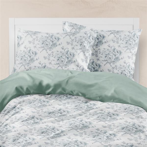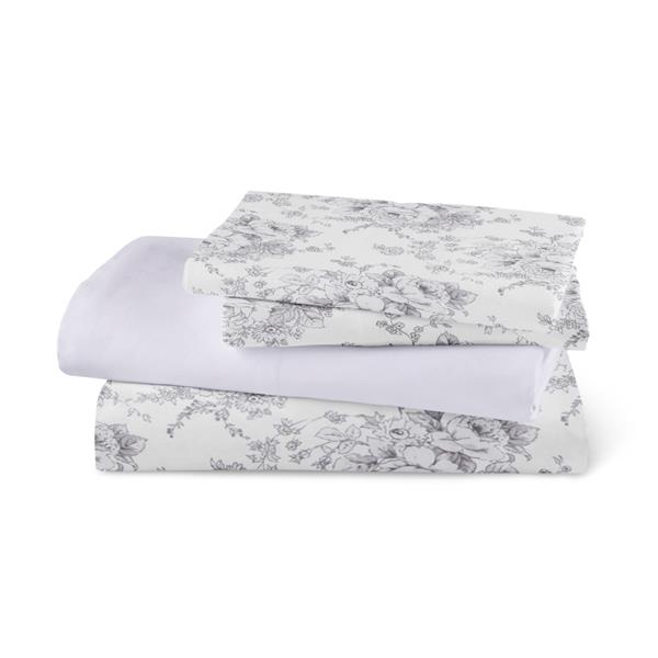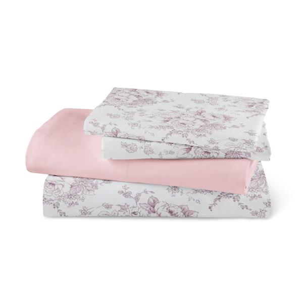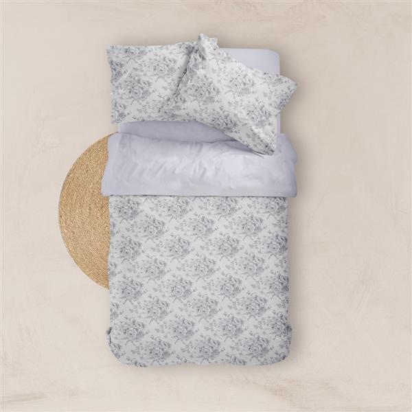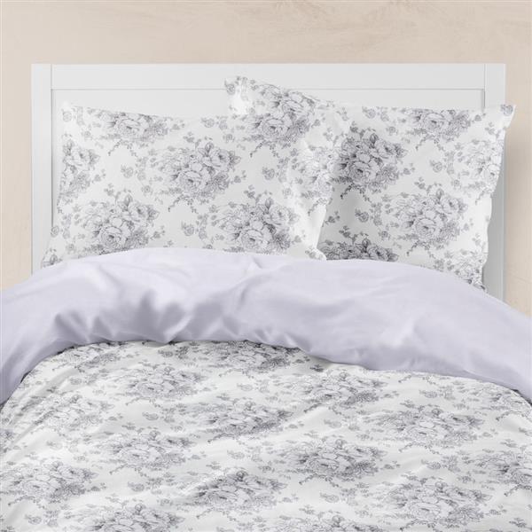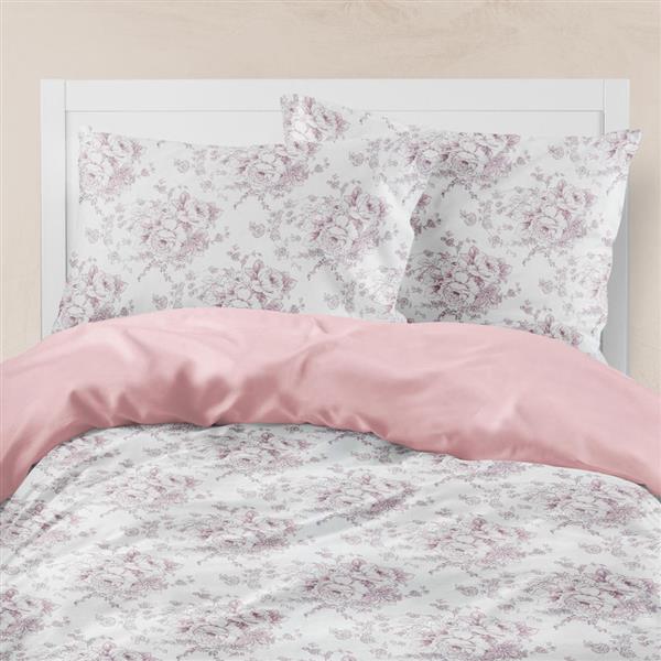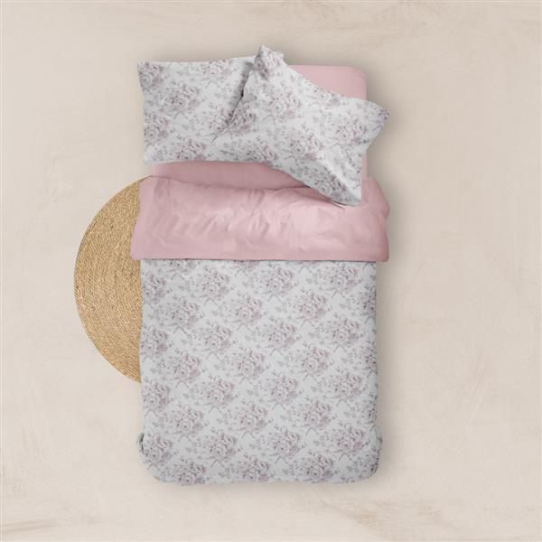 Σετ σεντόνια υπέρδιπλα με μαξιλαροθήκες από ύφασμα μερσεριζέ, 160 κλωστών, 100% βαμβακερό, συνδυασμός εμπριμέ φλοράλ μοτίβου και μονοχρωμίας, σε χρώμα λιλά.