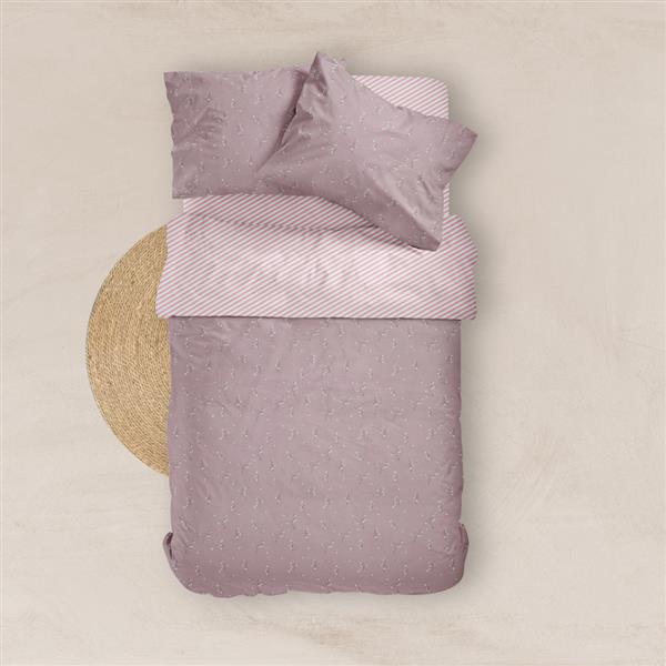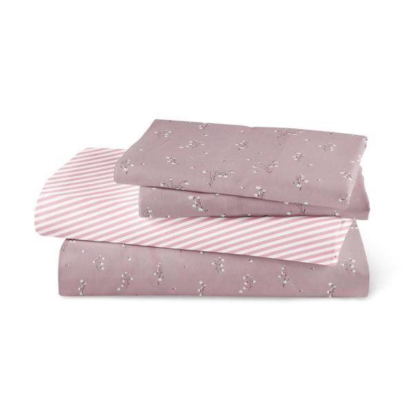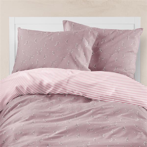 Σετ σεντόνια μονά με μαξιλαροθήκη από ύφασμα μερσεριζέ, 160 κλωστών, 100% βαμβακερό, συνδυασμός εμπριμέ φλοράλ μοτίβου και γεωμετρικού μοτίβου, σε χρώμα σάπιο μήλο.