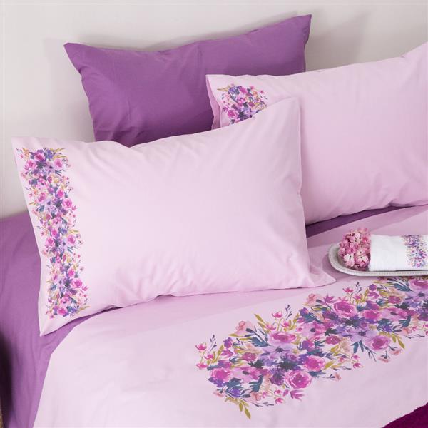Σετ σεντόνι υπέρδιπλo με μαξιλαροθήκες από ύφασμα μερσεριζέ, 160 κλωστών, 100% βαμβακερό, μονόχρωμο, σε χρώμα λιλά, με ψηφιακή εκτύπωση.