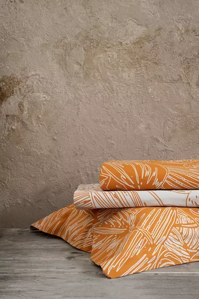 Τα σεντόνια arbust deep orange ξεχωρίζουν γιατί στο σχέδιό τους αποτυπώνονται οι φυλλωσιές της ζούγκλας σε μια ζωηρή απόχρωση του πορτοκαλί που συνδυάζεται με το μπεζ και δίνει ένα φωτεινό και ζεστό ταυτόχρονα αποτέλεσμα. Το εξωτικό τους σχέδιο ανήκει στη νέα monochromatic τάση της μόδας του σπιτιού και είναι ιδανικές για να φέρουν φως και χαρούμενη διάθεση στο υπνοδωμάτιο. Μπορούν να ταιριάξουν με πολλά διαφορετικά στιλ διακόσμησης χαρίζοντας μια πινελιά χρώματος στον χώρο.