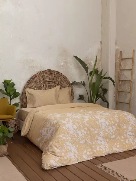 Τα σεντόνια inflory έχουν ζεστή μπεζ απόχρωση και λευκό floral σχέδιο με αέρινη αισθητική που θυμίζει τα χειμωνιάτικα λουλούδια. Διατηρούν τη σύνδεση με τη φύση και δημιουργούν αίσθηση ηρεμίας και ξεκούρασης στον χώρο. Καλαίσθητα και ουδέτερα, συνδυάζονται εύκολα και προσφέρουν μια υπέροχη επιλογή για το φθινοπωρινό και το χειμωνιάτικο υπνοδωμάτιο. Ταιριάζουν σε κάθε σπίτι που αγαπά την ανάλαφρη, φυσική διακόσμηση.