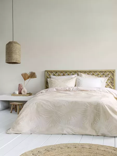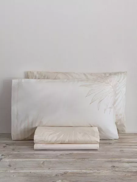 Τα βαμβακερά σεντόνια mahana έχουν μοναδικό jungle σχέδιο που αποτυπώνεται σε μη αναμενόμενες αποχρώσεις του μπεζ με το ροζ. Τόσο το σχέδιο όσο και οι παστέλ αποχρώσεις τους, δίνουν μια αέρινη καλοκαιρινή διάθεση στη διακόσμηση και μια αίσθηση φυσικής αρμονίας στο χώρο. Οι πάνελ μαξιλαροθήκες εμπλουτίζουν το στρώσιμο του κρεβατιού, δίνοντας ένα άψογο αισθητικό αποτέλεσμα. Συνδυάστε το σετ σεντονιών mahana με ουδέτερα φυσικά χρώματα, στοιχεία από φυσικά υλικά όπως το ξύλο και οι γιούτες και δημιουργήστε την απόλυτη καλοκαιρινή διάθεση στο υπνοδωμάτιο.