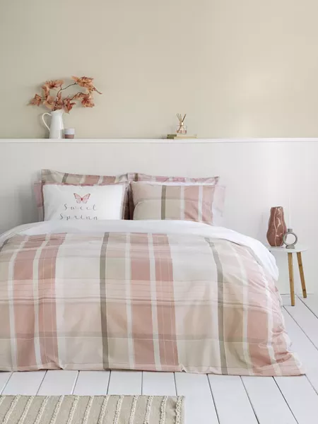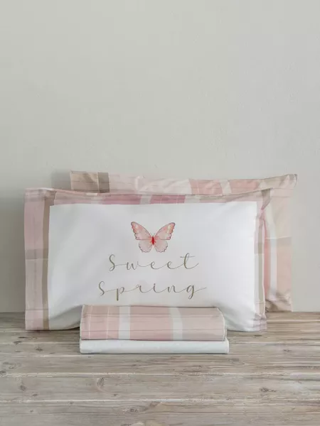 Τα βαμβακερά σεντόνια sweet spring συνδυάζουν τις παστέλ αποχρώσεις του ροζ και του μπεζ  σε ένα διαχρονικό καρό σχέδιο που αποπνέει φρεσκάδα. Τα χρώματά τους φωτίζουν τον χώρο και φέρνουν αίσθηση ηρεμίας και χαλάρωσης. Οι μαξιλαροθήκες τους είναι panel με υπέροχη συμμετρία και με μοτίβο που τονίζει την ανοιξιάτικη διάθεση του σχεδίου. Με τις απλές γραμμές και τους ουδέτερους χρωματισμούς τους είναι εύκολο να τα συνδυάσετε με πολλά διαφορετικά χρώματα και υλικά. Το σετ σεντονιών sweet spring μπορεί να συνδυαστεί με το αντίστοιχο κουβερλί, όπως και ένα έξτρα σετ μαξιλαροθηκών και είναι ιδανικό για όσους αγαπούν την απλότητα στη διακόσμηση του σπιτιού.