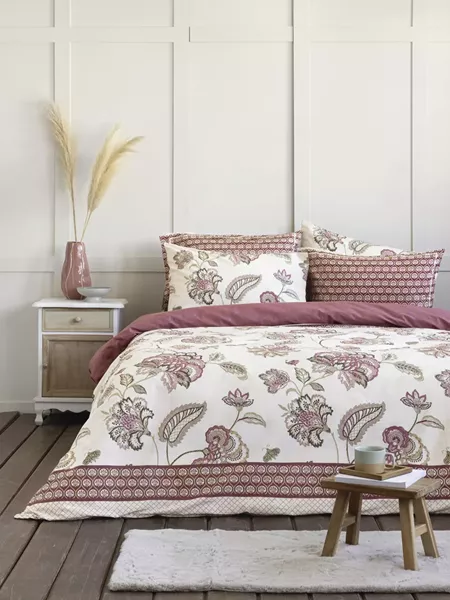 Τα βαμβακερά σεντόνια carmen έχουν σχέδιο που συνδυάζει floral και γεωμετρικά μοτίβα με απόλυτη αρμονία. Η διάθεση του σχεδίου είναι ρομαντική αλλά τόσο το ύφος όσο και τα χρώματα των μοτίβων, έχουν αναφορές και στην παράδοση. Οι διακοσμητικές φάσες με τα γεωμετρικά μοτίβα σε μπορντώ χρώμα προσθέτουν μια ενδιαφέρουσα αντίθεση στο σχέδιο. Οι πάνελ μαξιλαροθήκες του σετ, με το επίσης γεωμετρικό μπορντώ μοτίβο ολοκληρώνουν την όμορφη εικόνα του σετ. Μπορείτε να το συνδυάσετε τόσο με ξύλινα όσο και με μεταλλικά στοιχεία και θα έχετε ένα εξαιρετικά όμορφο αποτέλεσμα.