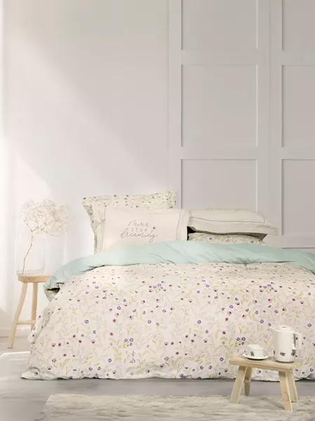 Τα βαμβακερά σεντόνια dream garden είναι ένας πραγματικός καμβάς της φύσης. Έχουν πλούσιο και ζωντανό μοτίβο με πάμπολλα μικρά, πολύχρωμα λουλούδια σε αποχρώσεις του ροζ, του μωβ και του πράσινου να απλώνονται σε ένα απαλό, κρεμ φόντο. Διαθέτουν επίσης oxford μαξιλαροθήκες με λιτό πάνελ μοτίβο, που συμπληρώνει μια αίσθηση απόλυτης γαλήνης και φρεσκάδας. Μετατρέψτε το υπνοδωμάτιό σας σε έναν ονειρεμένο κήπο με το σετ σεντονιών dream garden και απολαύστε μια απαλή και δροσερή αίσθηση που εξασφαλίζει έναν ξεκούραστο και ήρεμο ύπνο.