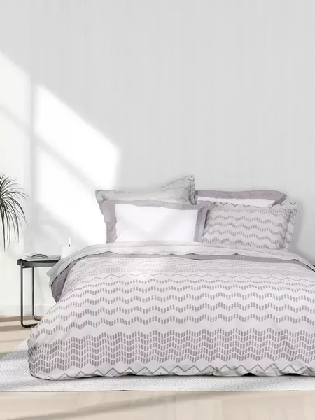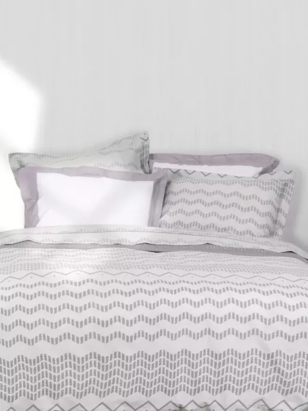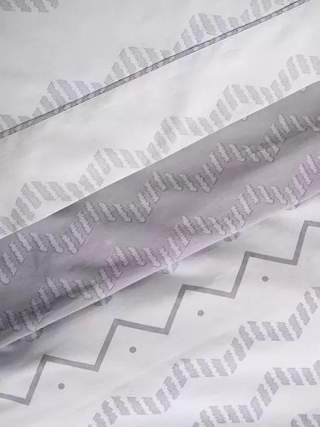 Τα βαμβακοσατέν σετ σεντόνια jeymour διαθέτουν σχέδιο με ένα κομψό γεωμετρικό ζιγκ-ζαγκ μοτίβο σε μια ήρεμη παλέτα από αποχρώσεις του γκρι και του λευκού. Το μοτίβο δημιουργείται από διακεκομμένες γραμμές, προσδίδοντας μια χειροποίητη, ανάγλυφη όψη που ξεχωρίζει. Αυτό το αφηρημένο σχέδιο δίνει μια μοντέρνα και δυναμική πινελιά στον χώρο σας. Το κατωσέντονο έχει διακριτική παρουσία με minimal γεωμετρικό μοτίβο, που αφήνει τον πρωταγωνιστικό ρόλο τόσο στο πανωσέντονο όσο και στις μαξιλαροθήκες του σετ. Οι λιτές πάνελ μαξιλαροθήκες που περιλαμβάνονται, έχουν ραφή oxford 4 πλευρών που τονίζουν την πολυτελή αισθητική του σχεδίου. Αναβαθμίστε την εμπειρία του ύπνου σας με το σετ σεντονιών jeymour, που συνδυάζει την πολυτέλεια του σατέν με ένα μοντέρνο, καλλιτεχνικό σχέδιο.