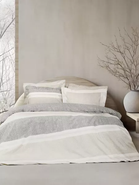 Τό βαμβακερό σετ σεντονιών lido συνδυάζει την κλασική κομψότητα με μια μοναδική, σύγχρονη προσέγγιση. Το σχέδιό του χαρακτηρίζεται από καθαρές γραμμές σε οριζόντιες ρίγες, οι οποίες φιλοξενούν στο εσωτερικό τους μια πλούσια υφή που θυμίζει όψη καμβά. Αυτή η λεπτομέρεια δίνει στο προϊόν μια αίσθηση φυσικότητας και βάθους, ενώ η συνολική αρμονία των χρωμάτων του, του μπεζ, του γκρι και του λευκού, δημιουργεί μια ήρεμη και φιλόξενη ατμόσφαιρα. Το σετ εμπλουτίζεται με τις oxford μαξιλαροθήκες που έχουν λιτό πάνελ μοτίβο στην μία τους όψη, ενώ στη δεύτερη όψη τους επαναλαμβάνεται το σχέδιο του πανωσέντονου. Επιλέγοντας το σετ σεντονιών lido δημιουργείτε έναν ποιοτικό και στιλάτο χώρο, ικανό να σας εξασφαλίσει την καθημερινή σας ξεκούραση.