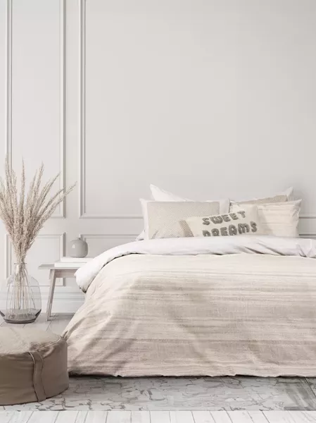 Τα φανελένια σεντόνια venity έχουν σχέδιο που χαρακτηρίζεται από οριζόντιες ρίγες σε μια ήρεμη, γήινη παλέτα από αποχρώσεις του μπεζ και της άμμου. Η ιδιαίτερη ανάγλυφη υφή των ριγών προσδίδει μια αίσθηση φυσικότητας και ζεστασιάς, θυμίζοντας ένα χειροποίητο ύφασμα που χαρίζει ηρεμία στον χώρο. Το κατωσέντονο δείχνει σχεδόν μονόχρωμο σε αποχρώσεις του κρεμ. Οι μαξιλαροθήκες του σετ είναι πάνελ στην μία τους όψη και διαθέτουν ένα ενδιαφέρον γεωμετρικό μοτίβο σε ήπιες αποχρώσεις του μπεζ συμβάλλοντας στην δημιουργία ενός χώρου που αποπνέει αρμονία και είναι ζεστός και φιλόξενος. Τα σεντόνια venity είναι ιδανικά για να προσφέρουν έναν ζεστό και αναζωογονητικό ύπνο, αγκαλιάζοντάς σας με την απαλή τους υφή, σε όλη τη διάρκεια του χειμώνα.