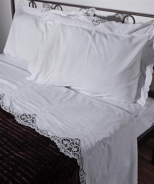 Βαμβακερό χειροποίητο βενίς σεντόνι, χωρίς κατωσέντονο και δύο μαξιλαροθήκες 60cm x 90cm